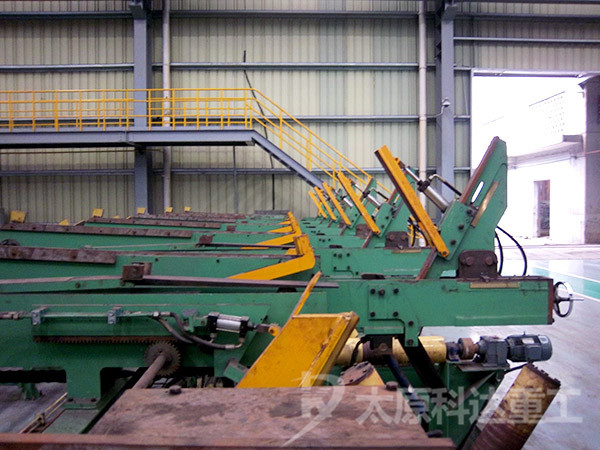 鋼管完成矯直、鋸切、檢驗(yàn)工序后開始進(jìn)入包裝工序,堆垛機(jī)采用自動(dòng)程序控制,能夠?qū)崿F(xiàn)鋼管上料、鋼管對齊、鋼管計(jì)數(shù)收集、鋼管成排橫移、鋼管成排上料、六角包堆垛、六角包橫移、稱重全過程的自動(dòng)化,然后由人工進(jìn)行打六角包、入庫。其目的是為了滿足流水線生產(chǎn)的成品入庫,改善員工現(xiàn)場的工作環(huán)境,提高工作效率和產(chǎn)品的包裝質(zhì)量。